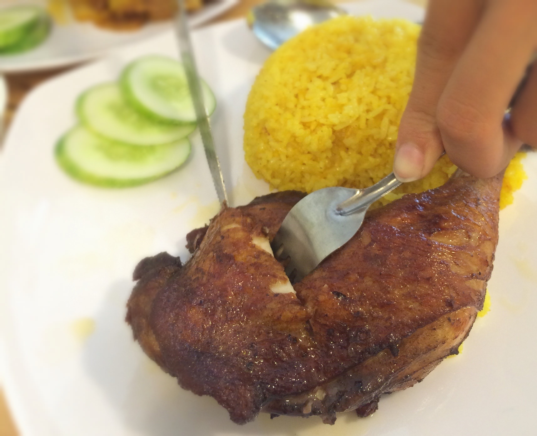 | Gà quay là món hấp dẫn, dễ kích thích vị giác, nên cơm gà quay được khách gọi nhiều. Đùi lớn, được tẩm ướp rồi quay lên thơm phức, cháy cạnh. |