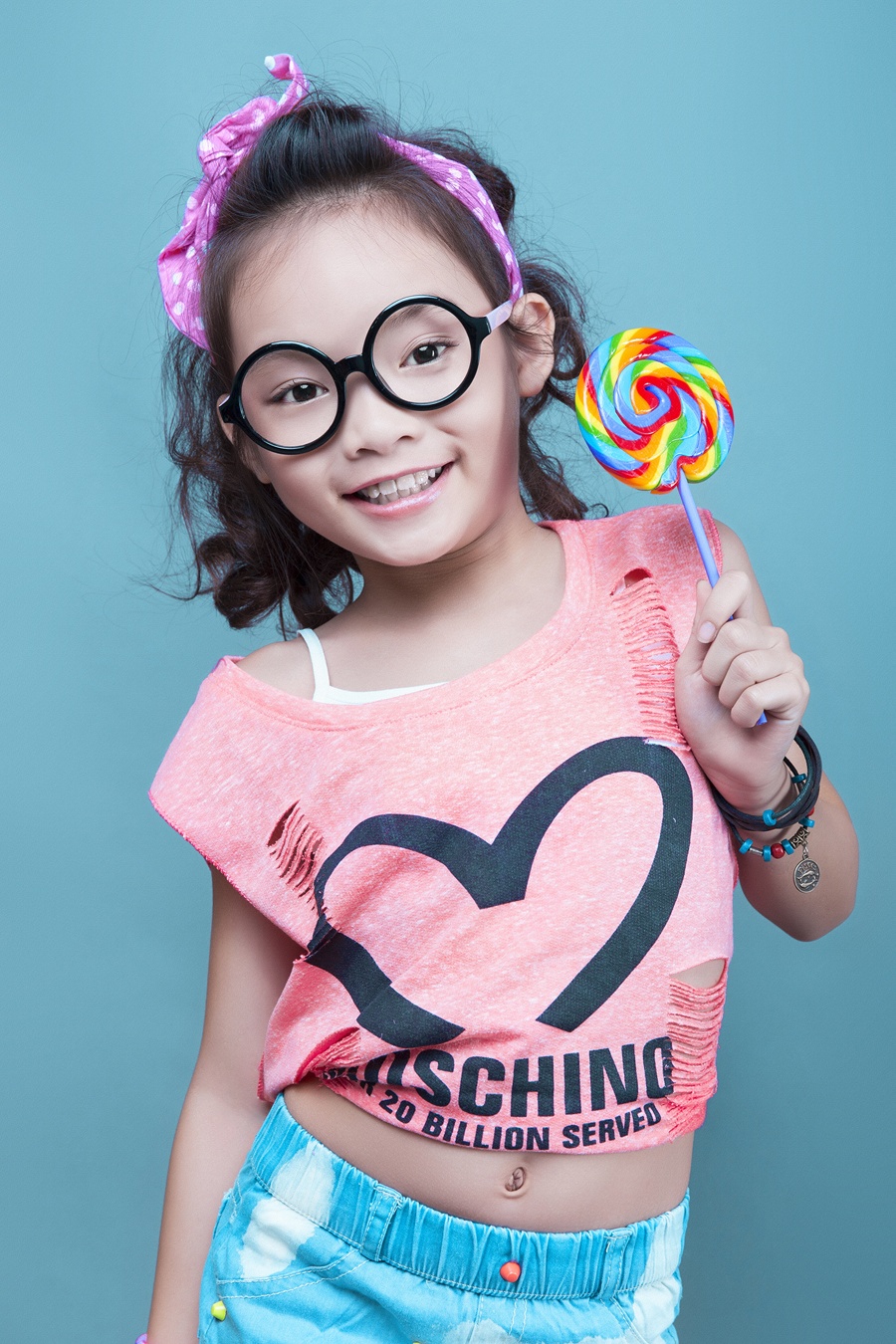 | Sở hữu gương mặt đáng yêu, tính cách hài hước và thông minh, Linh Hoa hòa nhập nhanh chóng với không khí buổi chụp, đồng thời luôn sáng tạo với nhiều tư thế ngẫu hứng. |