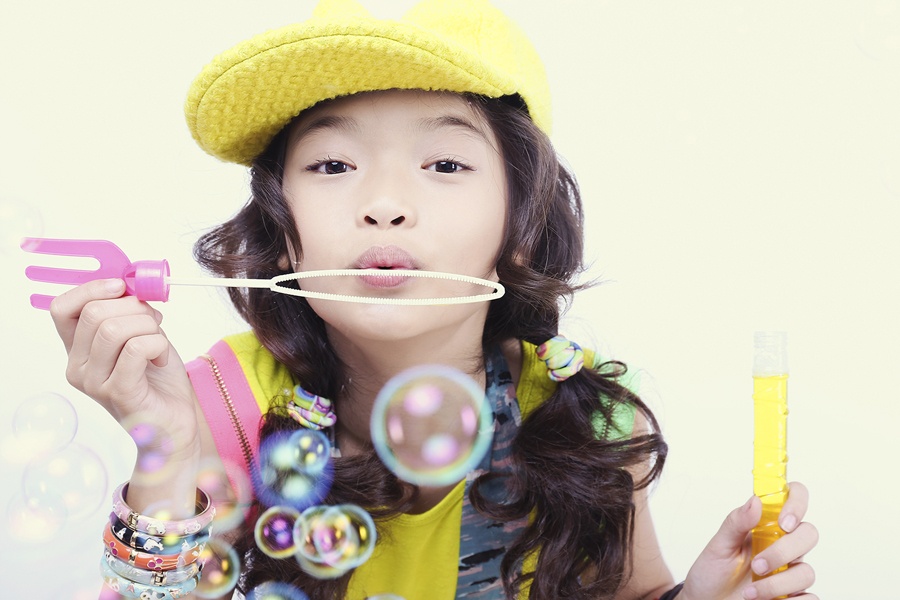 | Hào hứng khi sử dụng đạo cụ thổi bong bóng. |