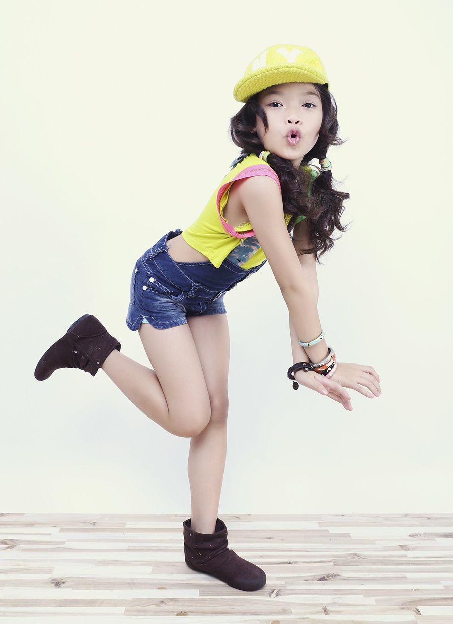 | Nhóc tỳ 10 tuổi nhí nhảnh chu môi, uốn cong mình làm dáng tinh nghịch. |