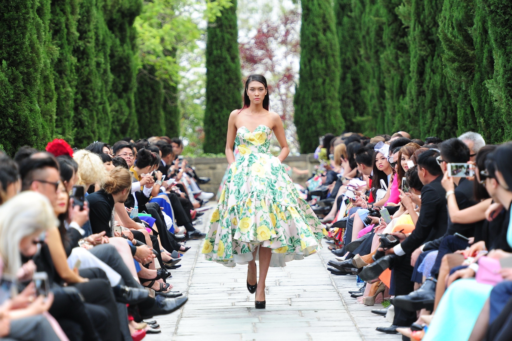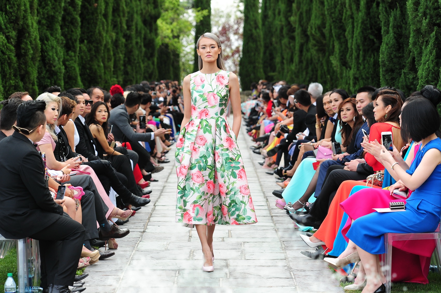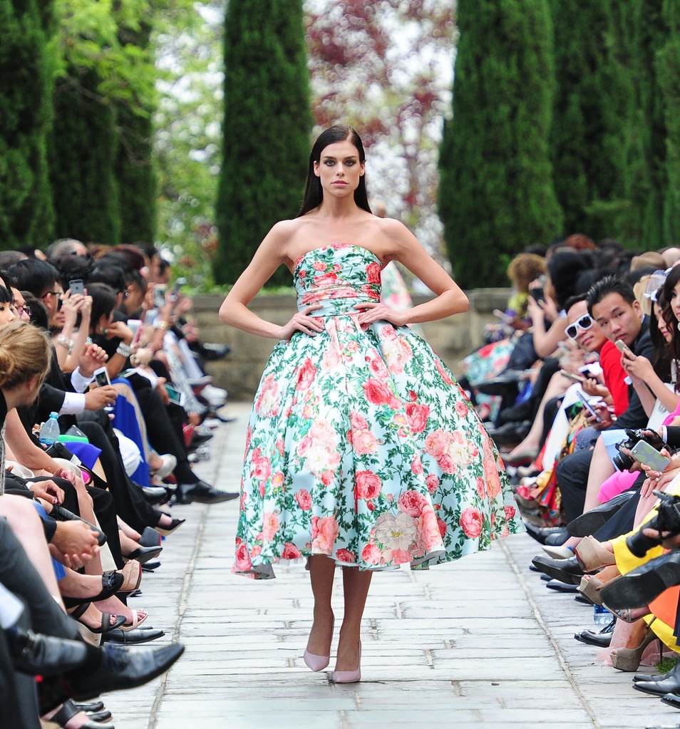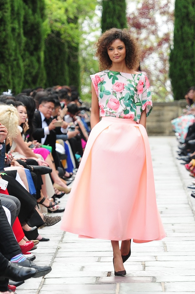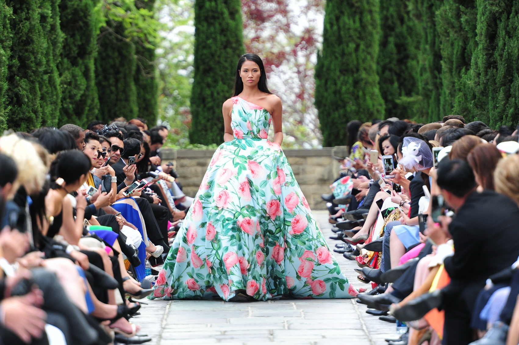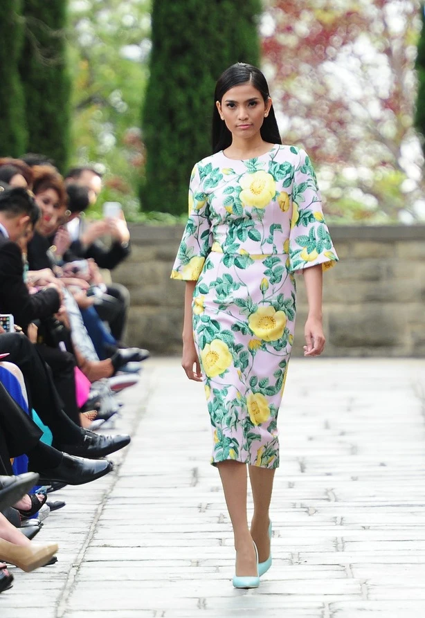 | Dàn mẫu sinh động trên dàn diễn gần gũi với thiên nhiên nhờ hoa văn hoa hồng lãng mạn. |