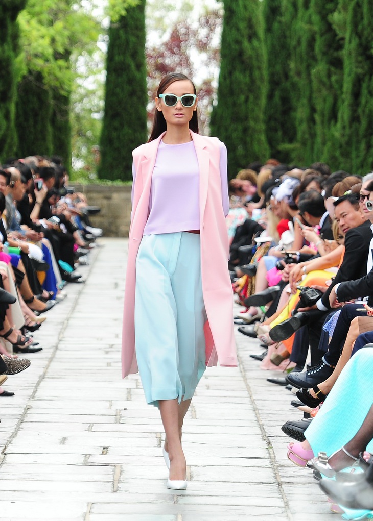 | Các người mẫu Tây tham gia show diễn được chính Đỗ Mạnh Cường tuyển chọn từ buổi casting vài ngày trước. Trang phục sắc màu êm dịu tôn hình ảnh nữ tính, thanh lịch của người mẫu. |