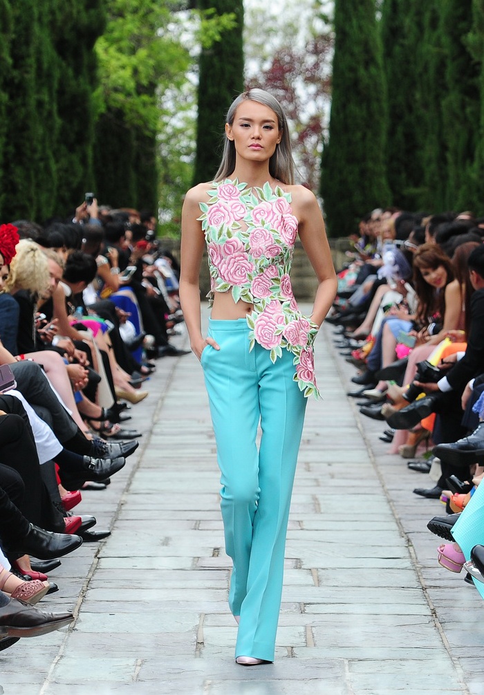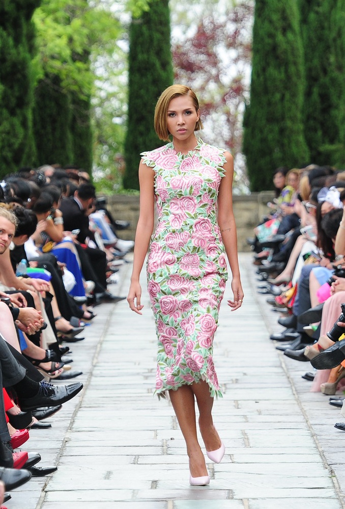 | Chân dài Thanh Thảo từ Việt Nam sang tham gia thể hiện bộ sưu tập. Người đẹp diện đầm cổ điển in họa tiết hoa trải đều trên thân váy. Cô sở hữu phong cách trình diễn tự tin, lạnh lùng. |