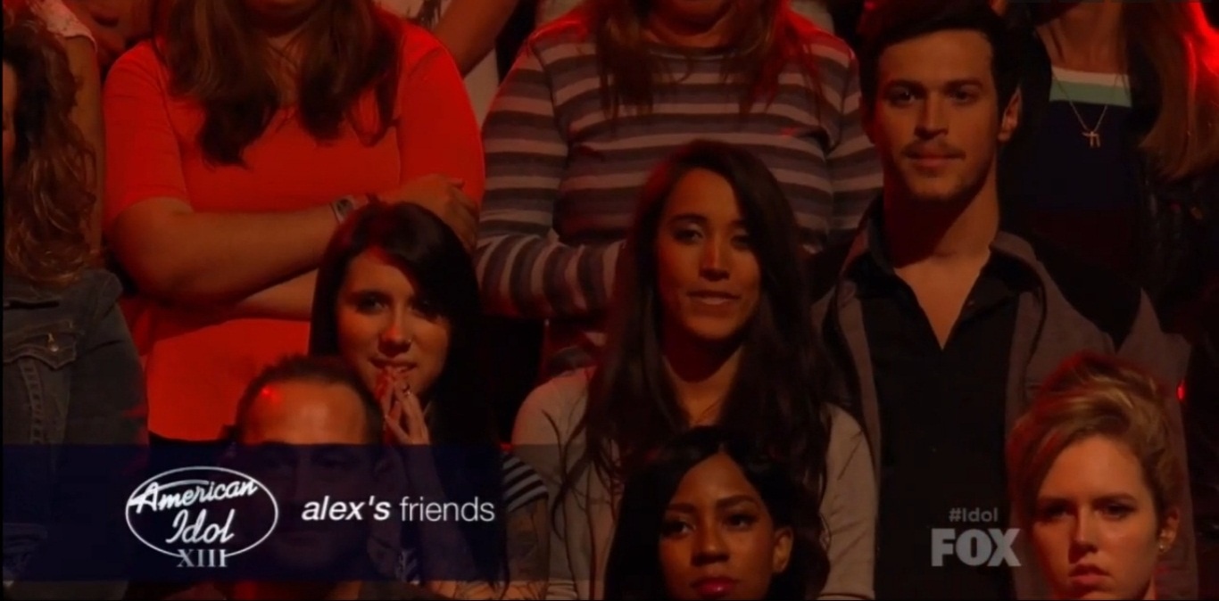 Thật không khó để nhận ra cặp trai tài gái sắc của X Factor. Dù đứng dưới hàng ghế khán giả nhưng mọi ánh mắt vẫn đổ dồn về phía Alex và Sierra. Họ chăm chú theo dõi cả 13 tiết mục và dành sự ủng hộ đặc biệt cho thí sinh Alex Preston. Đứng bên cạnh họ là một cựu thí sinh của X Factor, Jillian Jensen, người cũng đã lọt vào top 20 Idol năm nay.