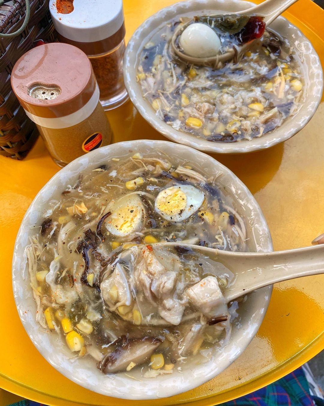 Súp gà Thanh Hiền nằm ngay trên con phố Cầu Gỗ là địa chỉ quen thuộc với những tín đồ ẩm thực khu vực phố cổ. Món súp ở đây được nhiều thực khách dành lời có cánh. Với số tiền khoảng 25.000-35.000 đồng, bạn có thể thưởng thức bát súp đầy đặn. Phần trứng bắc thảo được nhiều người ghé quán đánh giá không bị hăng nên khá dễ ăn. Ảnh: Ngocsfood. |