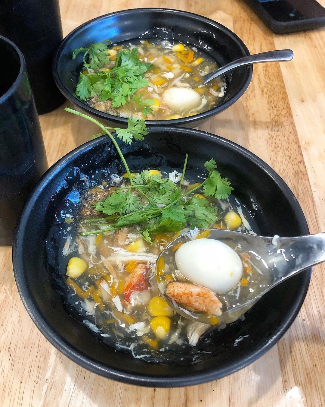 Súp cua trứng bắc thảo - GA rau má nằm ngay trong thiên đường ẩm thực Chùa Láng là địa chỉ quen thuộc với nhiều người sành ăn. Không gian quán khá nhỏ, nhưng được khách hàng nhận xét sạch sẽ và tận tình. Một bát súp ở đây khá đầy đặn gồm trứng bắc thảo, trứng cút, thịt cua, thanh cua, thịt gà xé... dao động khoảng 37.000-47.000 đồng. Phần súp sánh, ngọt hòa quyện cùng vị bùi bùi của trứng bắc thảo rất bắt vị. Ảnh: Rei.an_roi_lan, the.mini.cindy. |
