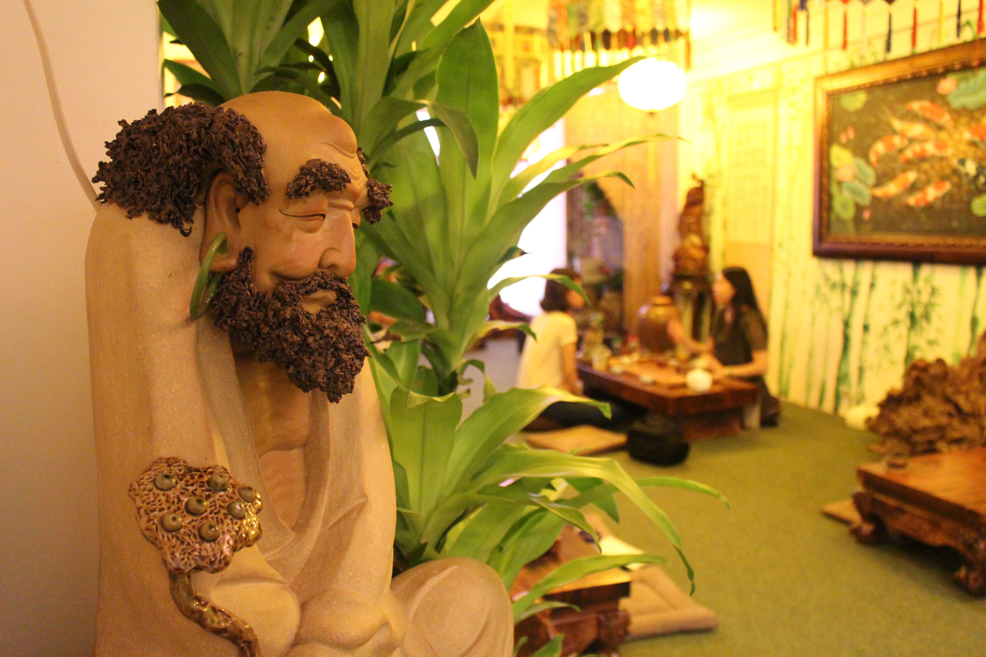 Không gian thiền với tiếng nước, tiếng đàn, hương trầm cùng hệ thống tượng các vị la hán mang đến cảm giác vô ưu, vô lo.