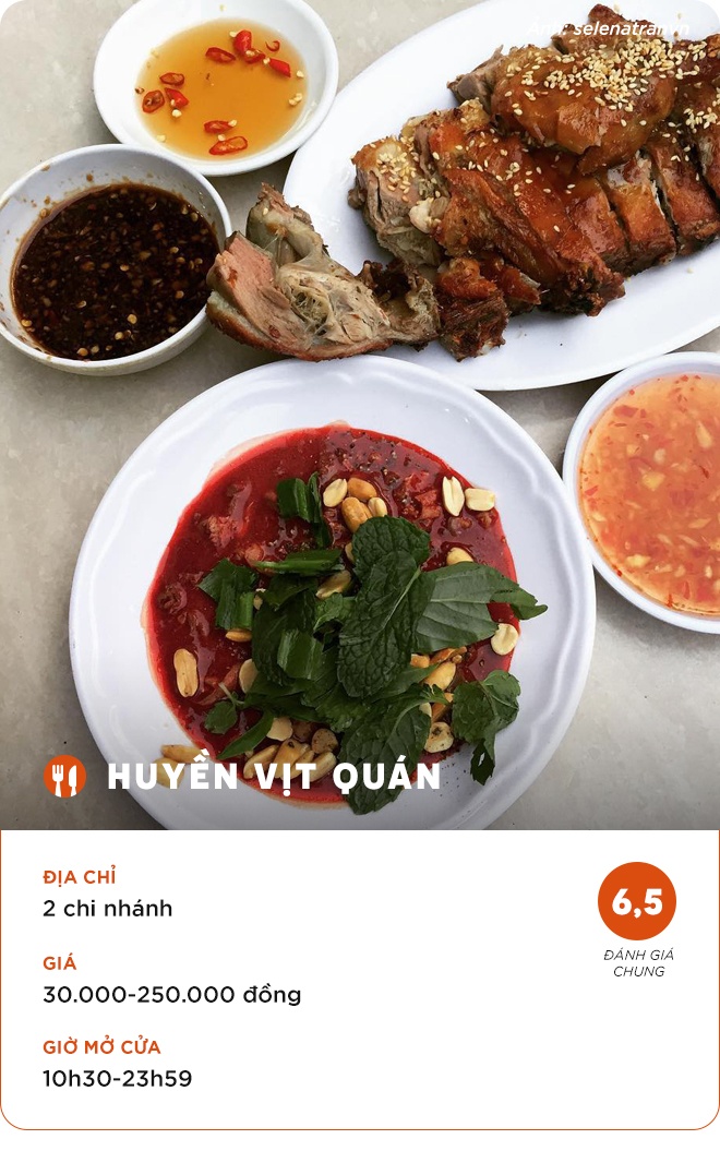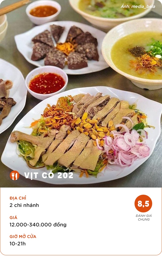 Đây là quán vịt bình dân được lòng hội sành ăn tại TP.HCM. Những món ăn nóng hổi thích hợp đổi vị ngày mưa gồm cháo, bún, miến măng vịt. Trong đó, gỏi vịt là món ăn thanh mát, phù hợp với những ngày thời tiết nóng bức. Tùy theo khẩu phần 1/2, 1/4 hay nguyên con, bạn sẽ được tặng kèm cháo hoặc lòng gỏi.