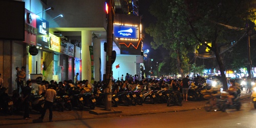 Trên một đoạn phố Quang Trung trong tối 3/5, mùi shisha tỏa thơm lừng góc phố. Không chỉ nam nữ thanh niên, nhiều vợ chồng trẻ cũng đưa con đến đây tụ họp.