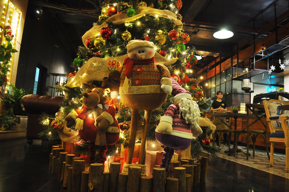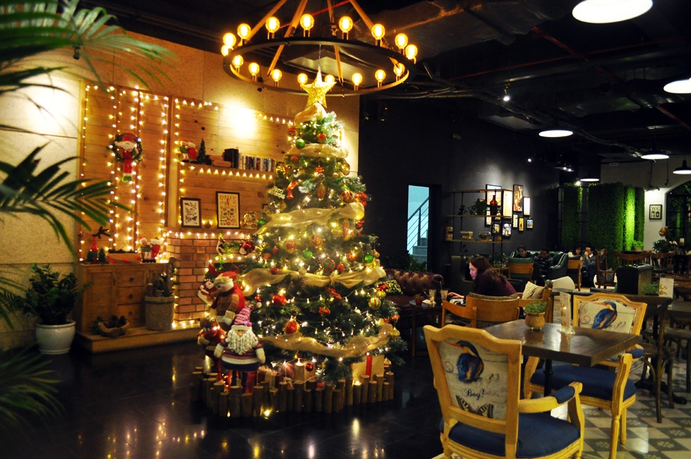 | Cây thông Noel là điểm nhấn sáng bừng trong không gian nhà hàng. |