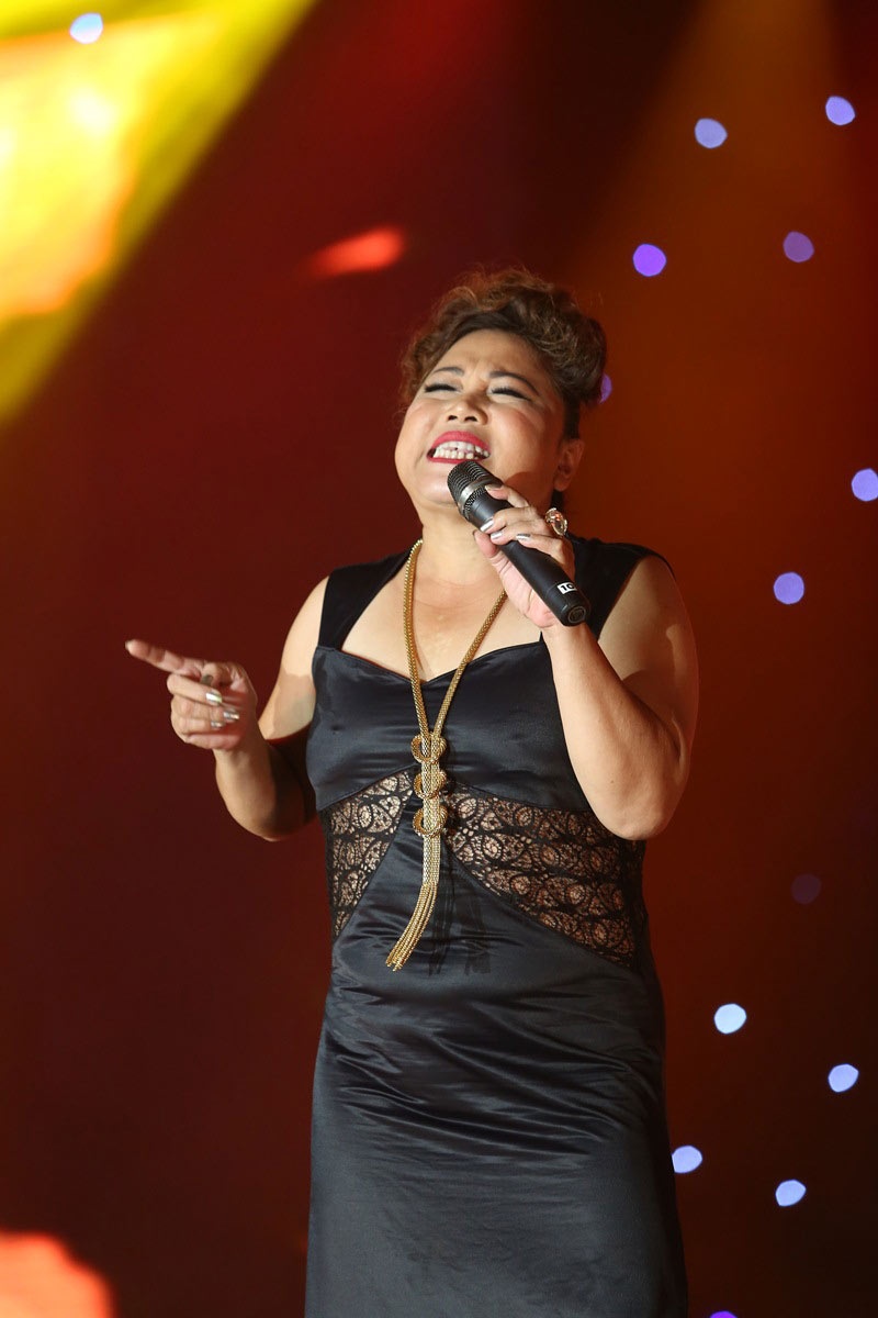 | Nữ ca sĩ Jonalyn khiến cả khán phòng bất ngờ khi thể hiện đầy xúc động ca khúc nhạc phim Người tình của chồng tôi và Let it go. |
