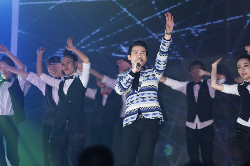 | Quốc Thiên trẻ trung và khuấy động sân khấu với ca khúc Xin chào! Xin chào. |