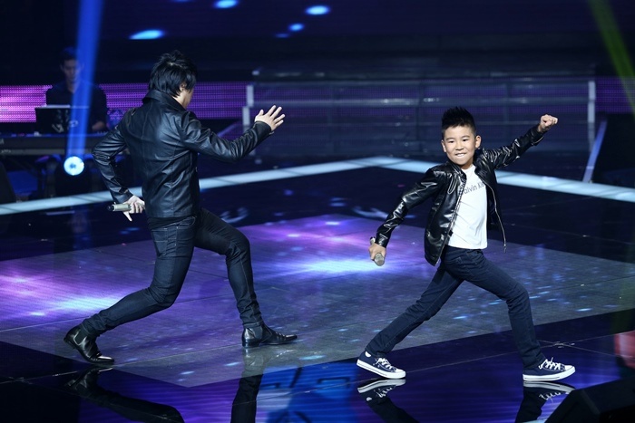 Trước đó, khi vừa có mặt ở phía ngoài trường quay, Quang Anh đã nhận được sự ủng hộ nhiệt tình của khán giả. Các fan cuồng của cậu nhóc 12 tuổi rầm rộ cờ quạt, băng-rôn và liên tục gọi tên thần tượng nhí. Sự nhiệt tình của khán giả khiến cậu bé càng tự tin và mạnh mẽ. Nhưng tiếp lửa cho Quang Anh mãnh liệt nhất chính là sự xuất hiện của mẹ ngay trên sân khấu của phần trình diễn Đá trông chồng. Cậu nhóc không chỉ khoe giọng hát đầy nội lực mà còn thể hiện sự sáng tạo của mình khi thể hiện một ca khúc dân gian đương đại khó tới mức không phải ca sĩ chuyên nghiệp nào cũng đủ bản lĩnh thể hiện.