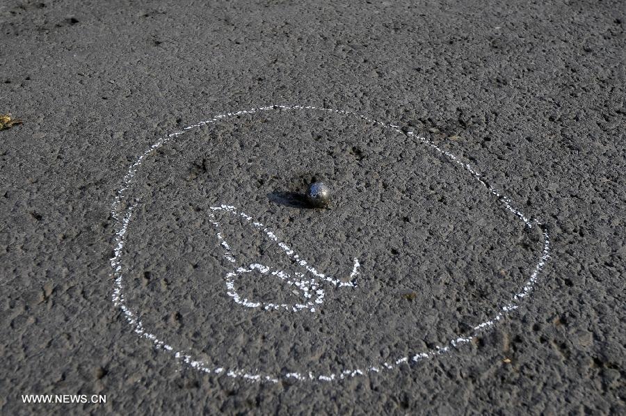 | Một viên bi sắt tại hiện trường. Ảnh: Tân Hoa Xã. |
