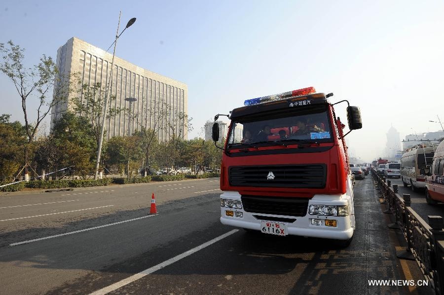 | Xe cứu hỏa túc trực tại hiện trường vụ nổ. Ảnh: Tân Hoa Xã. |