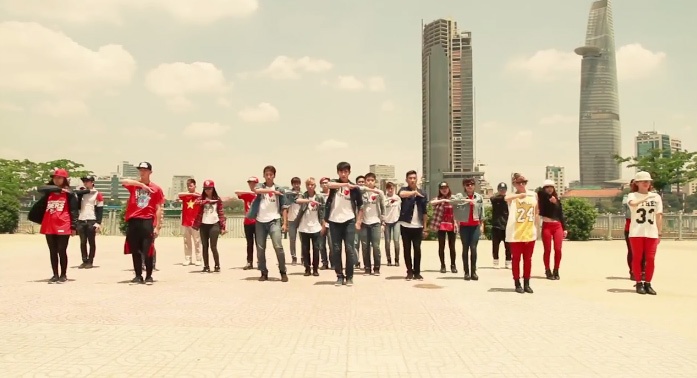 | Chia sẻ thêm về ý nghĩa của phần vũ đạo trong clip nhảy do chính mình biên đạo, Quang Đăng cho biết: “Vũ đạo trong clip Đăng chọn là những động tác mạnh mẽ, thể hiện sức mạnh tinh thần của người Việt. Phần âm nhạc được chọn để thực hiện clip nhảy này là một bài hát rất nổi tiếng của Michael Jackson nói về nạn áp bức bóc lột người da màu cũng như kỳ thị chủng tộc trên thế giới nhưng họ vẫn bất khuất và mạnh mẽ. Điều này tương đồng với người Việt Nam, dù trong lịch sử từng chịu nhiều áp bức bóc lột nhưng vẫn hiên ngang, dũng cảm". |