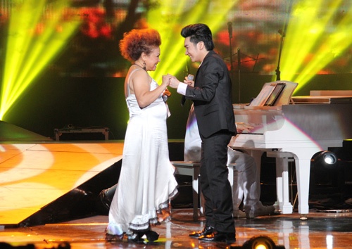 - Tôi không gặp khó khăn gì cả. Khi tôi gọi điện mời chị, chị đã Cẩm Vân đồng ý ngay và lập tức kiêm tra lại lịch chỉ sau 1 phút. Qua đây tôi cũng muốn gửi lời cảm ơn chị Vân. Chị không gây áp lực gì cho tôi. Dù là ca sĩ gạo cội nhưng khi nhận lời tham gia show của tôi, chị vẫn chăm chỉ tập luyện nghiêm túc, đến sớm về muộn và chỉ bảo cho tôi cách xử lý bài hát. Tôi luôn dành sự trân trọng và ngưỡng mộ chị và càng hạnh phúc hơn khi được song ca cùng chị. Khán giả đã vỗ tay rất nhiều cho tiết mục này.