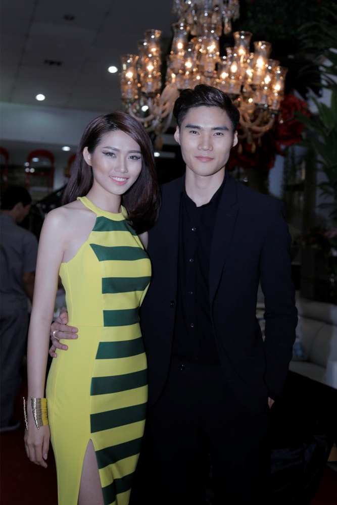 | Tối 26/1, Quán quân Vietnam's Next Top Model 2014 - Quang Hùng cùng bạn gái Quỳnh Châu tham dự một sự kiện diễn ra tại TP HCM. Nam người mẫu diện trang phục tối màu lịch lãm, không ngần ngại ôm eo người yêu chốn đông người. Quỳnh Châu nổi bật trong bộ đầm ôm tông màu sáng. Cô trang điểm nhẹ nhàng, thanh lịch. Thời gian này, cặp đôi người mẫu bước ra từ chương trình tìm kiếm người mẫu lớn nhất hiện nay thường tay trong tay tham dự các sự kiện phía Nam. |