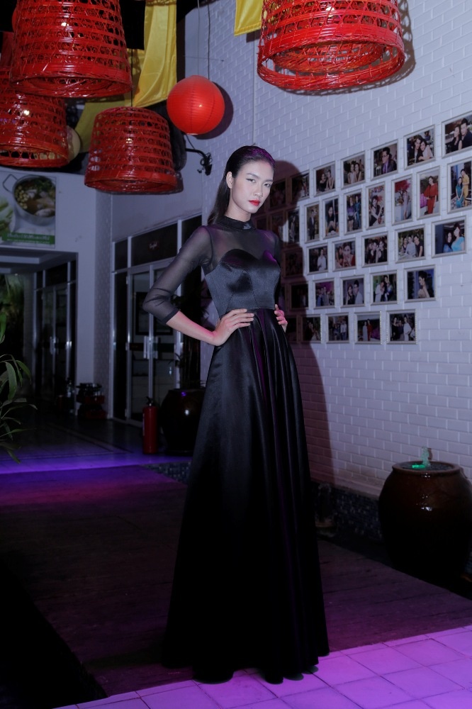 | Quán quân mùa giải thứ 5 Nguyễn Oanh trông khác lạ khi diện bộ váy gam màu đen tuyền sang trọng. Thiết kế dài, kín đáo phù hợp với vóc dáng cao ráo của người mặc. |