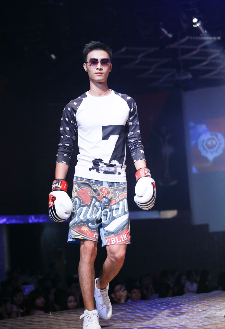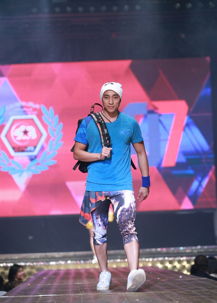 | Quán quân Vietnam's Next Top Model mùa thứ 5 nổi bật trên sàn diễn với gương mặt điển trai cùng thân hình chuẩn trong trang phục thể thao. |