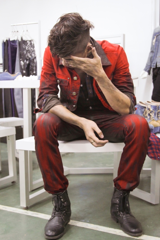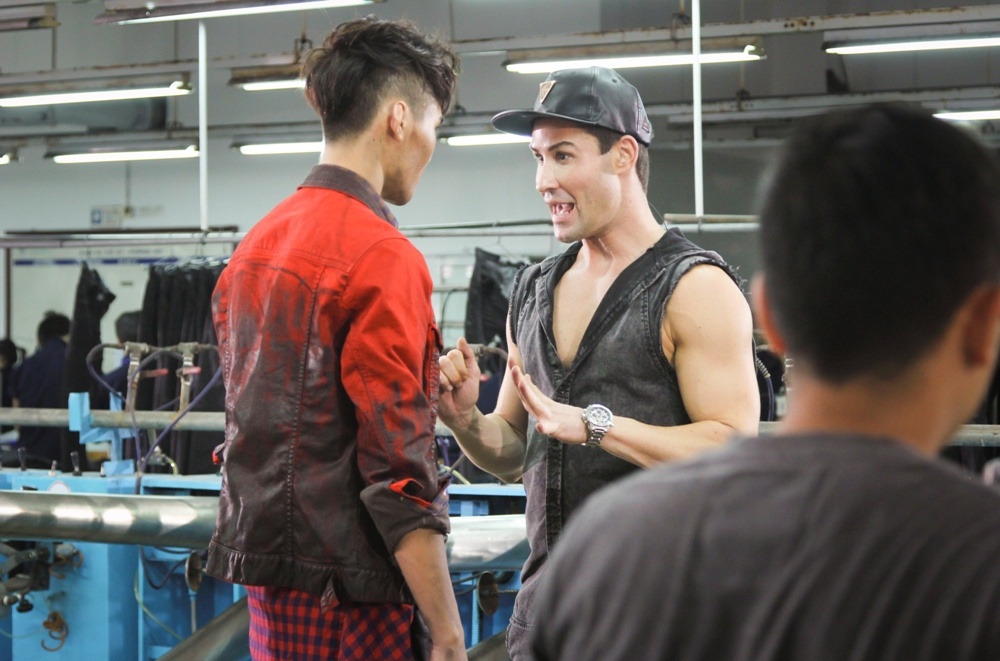 | Nam giám khảo tỏ ra không mấy hài lòng trước cách làm việc thiếu tôn trọng ê-kíp của thí sinh. Chuyên gia catwalk đến từ nước Úc đã cho dừng phần thi của Quang Hùng. |