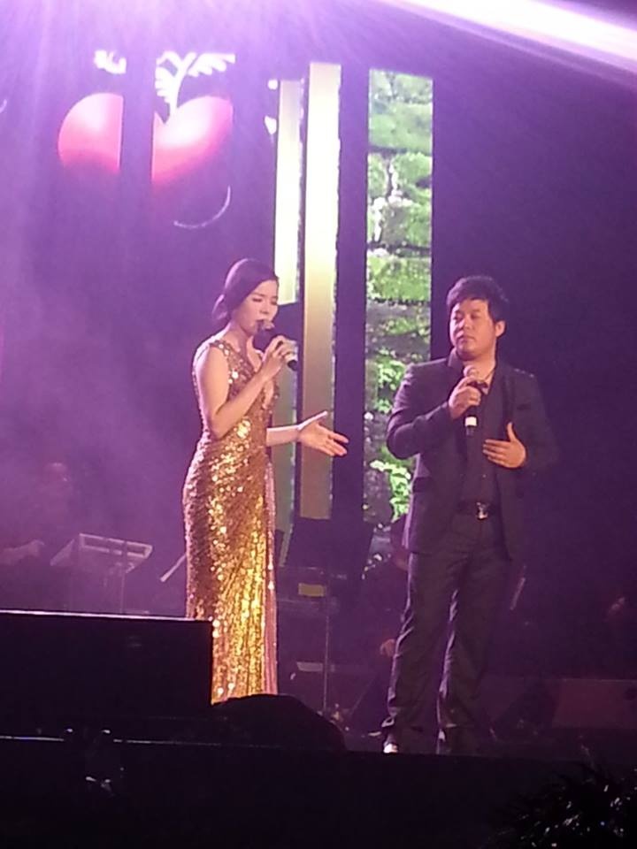 | Hình ảnh của Quang Lê cùng Lệ Quyên đứng trên sân khấu sau vụ tai nạn. Anh vẫn có chút gì đó bơ phờ và mệt mỏi chứ chưa thực sự hồi phục tinh thần sau tai nạn kinh hoàng. |