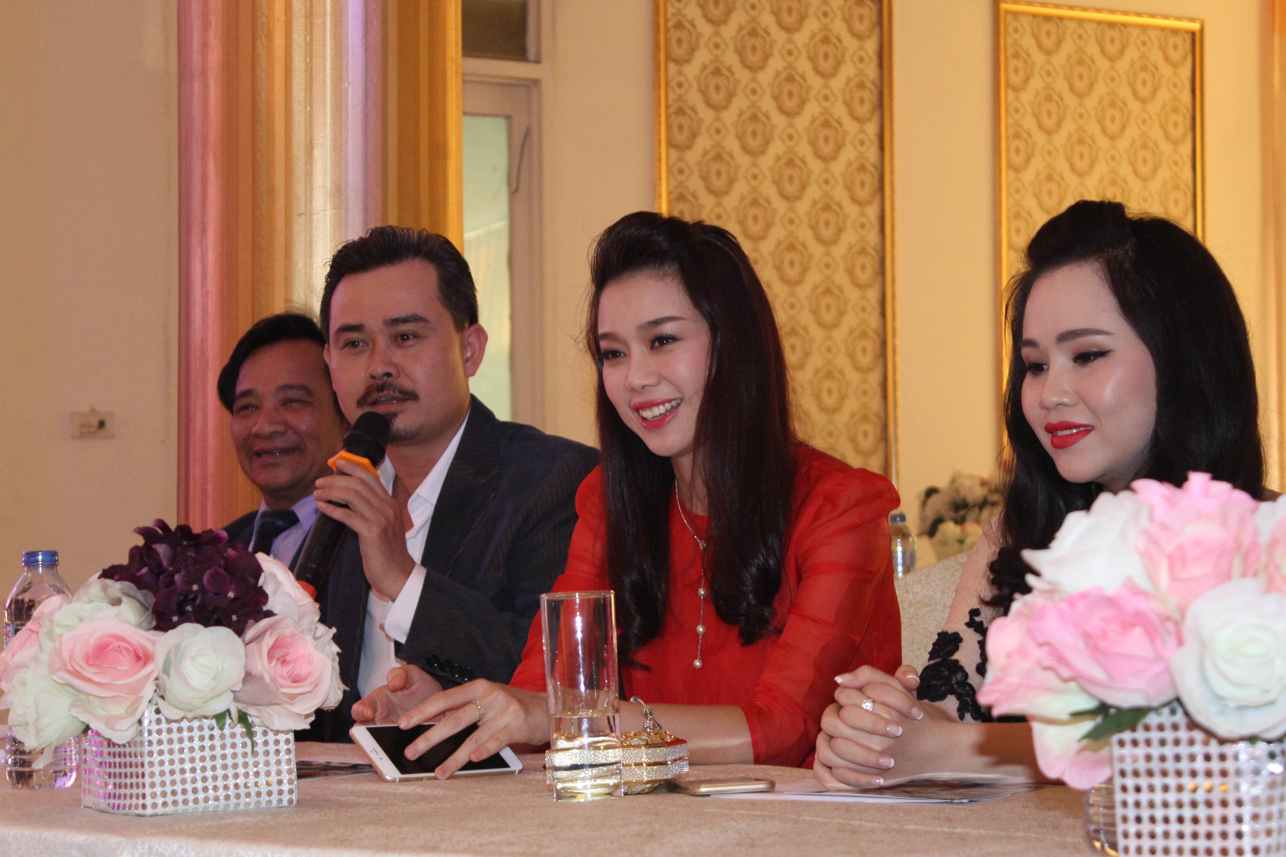 | Nghệ sĩ Quang Tèo, Vĩnh Xương, người đẹp Trương Tùng Lan, Trương Phương trong buổi họp báo ra mắt phim Ván cờ vồ 2. |