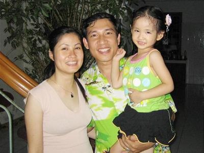 | Quang Thắng bên vợ con. |