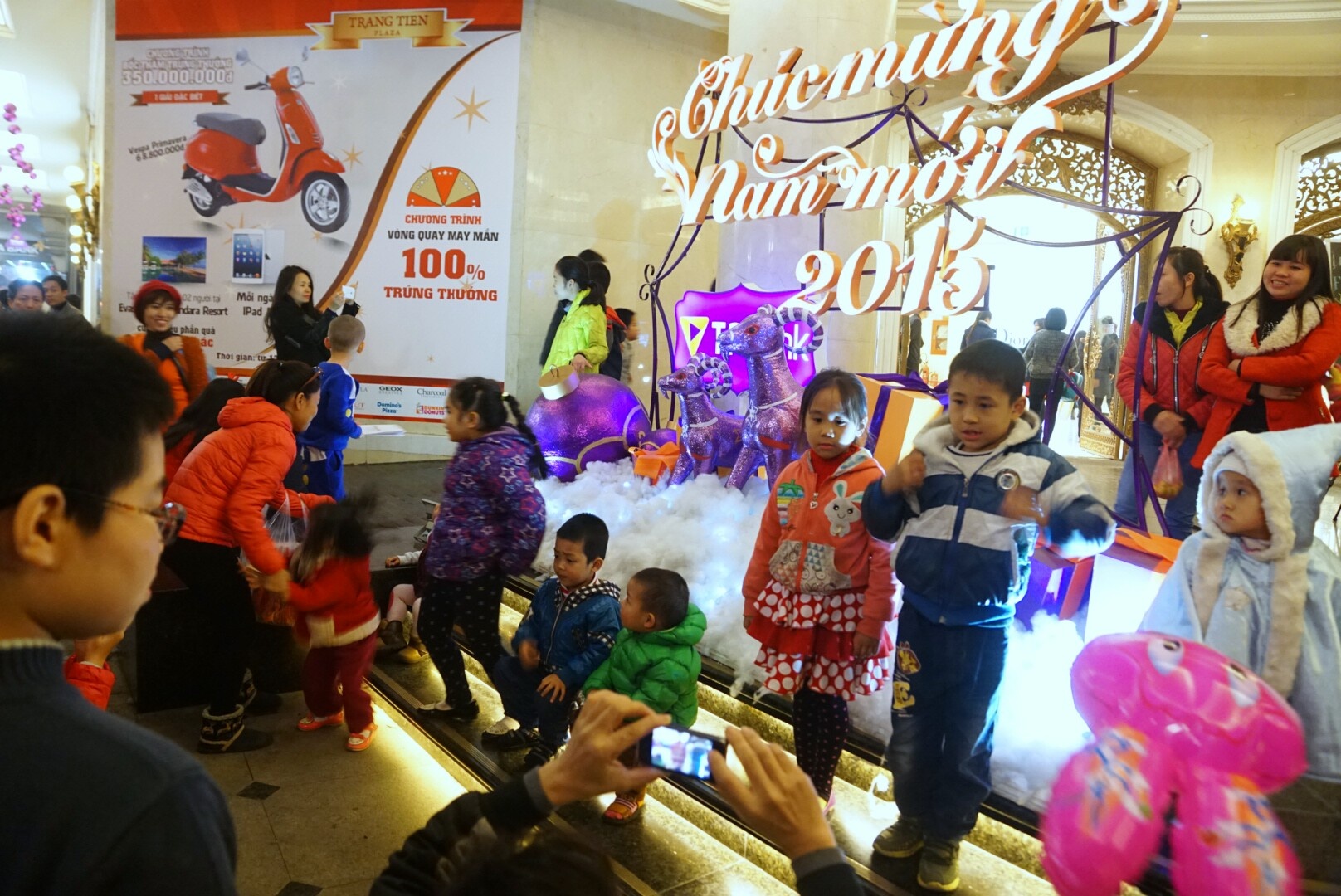 | Cửa các trung tâm thương mại cũng là nơi thu hút đông đảo người dân vui chơi. Ảnh: Duy Hiếu. |