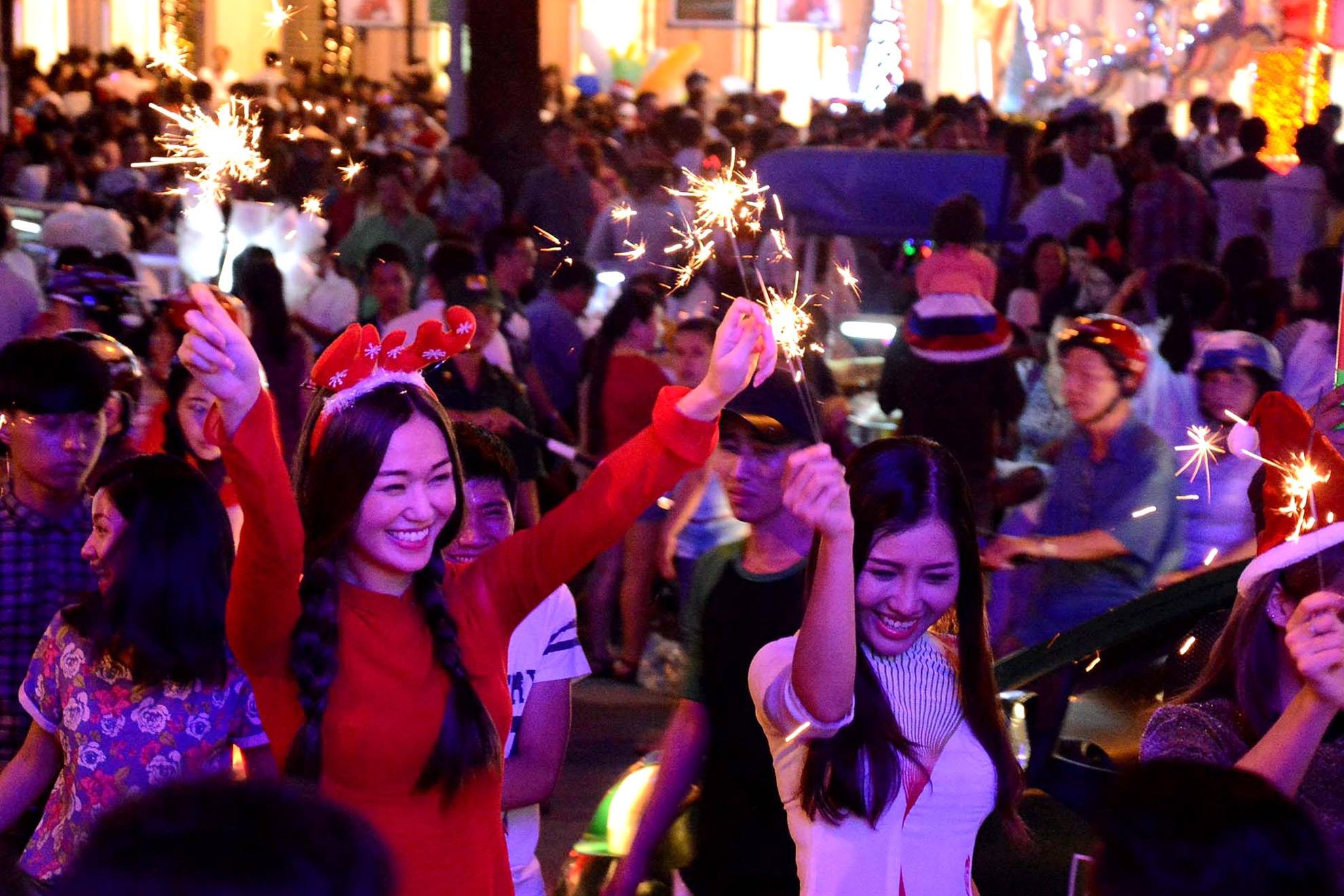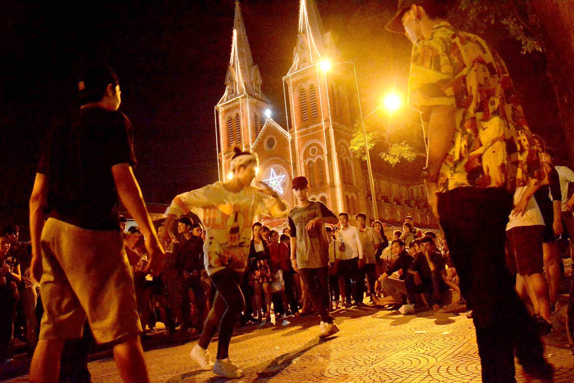 | Tại TP.HCM, cảnh ăn chơi nhảy múa tưng bừng diễn ra trên khắp các tuyến đường trung tâm quận 1. Ảnh: Minh Thanh. |