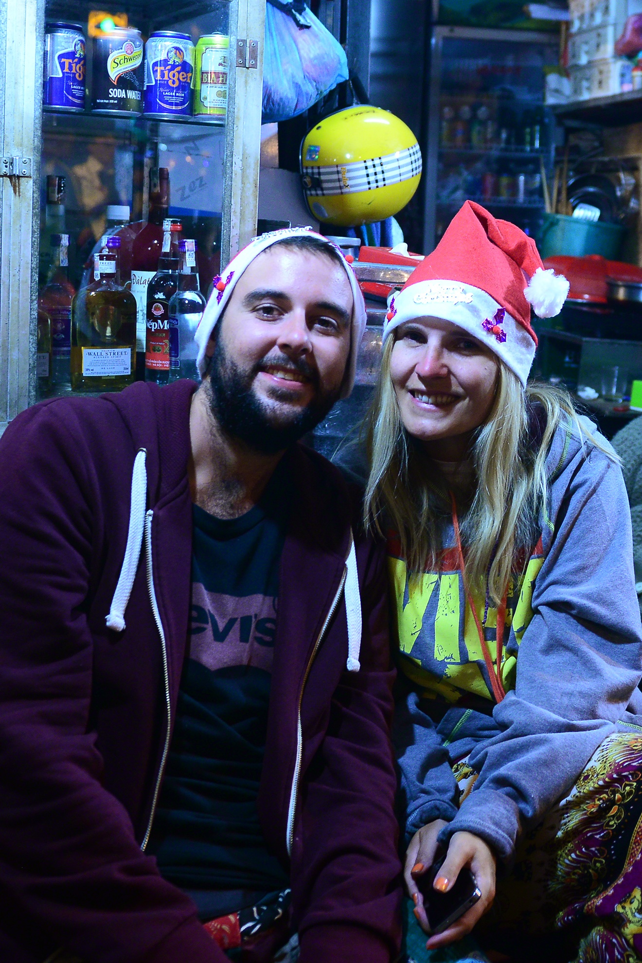 | Đôi bạn trẻ người nước ngoài vừa ngồi vỉa hè thưởng thức đồ uống và tận hưởng không khí Noel Hà Nội. Ảnh: Tuấn Mark. |