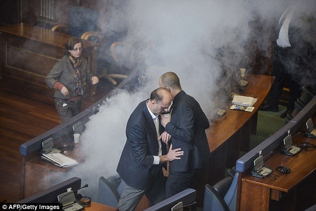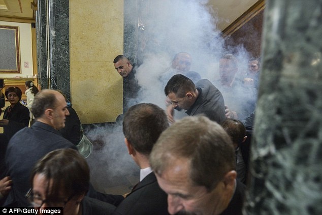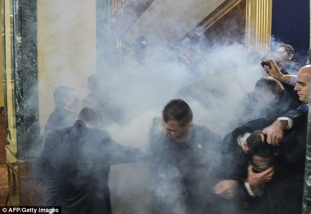 | Các nhà lập pháp cố gắng thoát khỏi hơi cay. Ảnh: AFP |