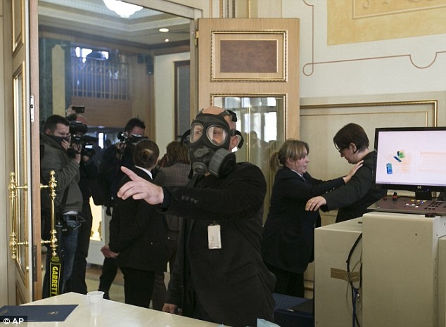 | Nhiều nghị sĩ đeo mặt nạ phòng khí độc hoặc khẩu trang. Ảnh: AFP |