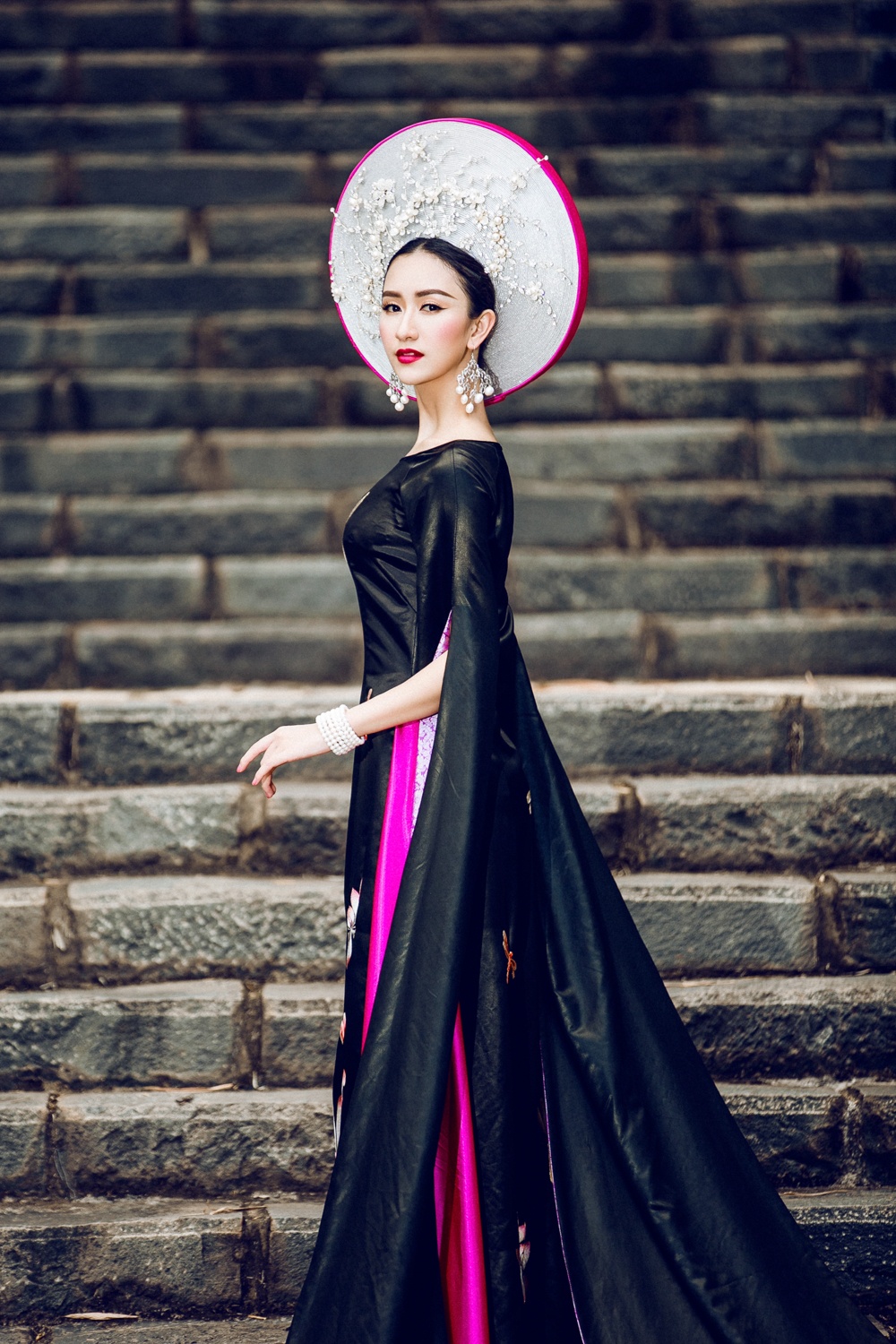 | Trang phục truyền thống của đại diện Việt tại cuộc thi Hoa hậu Liên lục địa 2015 do Võ Việt Chung thiết kế. Bộ áo dài được thêu tỉ mỉ trong ba tháng. |