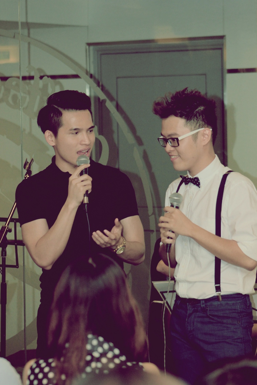 | Quốc Thiên đến chúc mừng Hamlet Trương và anh không quên gửi đến khán giả ca khúc Buồn làm sao buông. |