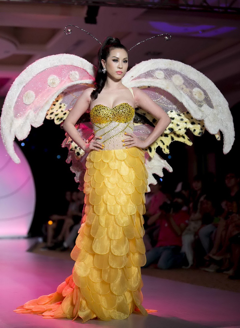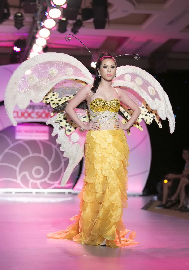Kiều Ngân trình diễn một thiết kế cánh bướm trang nhã.