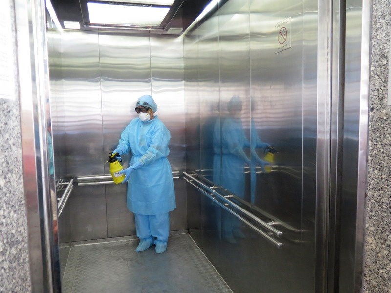 | Ngay sau đó, nhân viên y tế phun thuốc diệt vi rút Mers-CoV. |