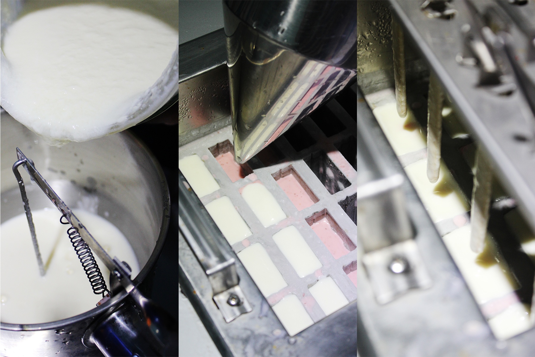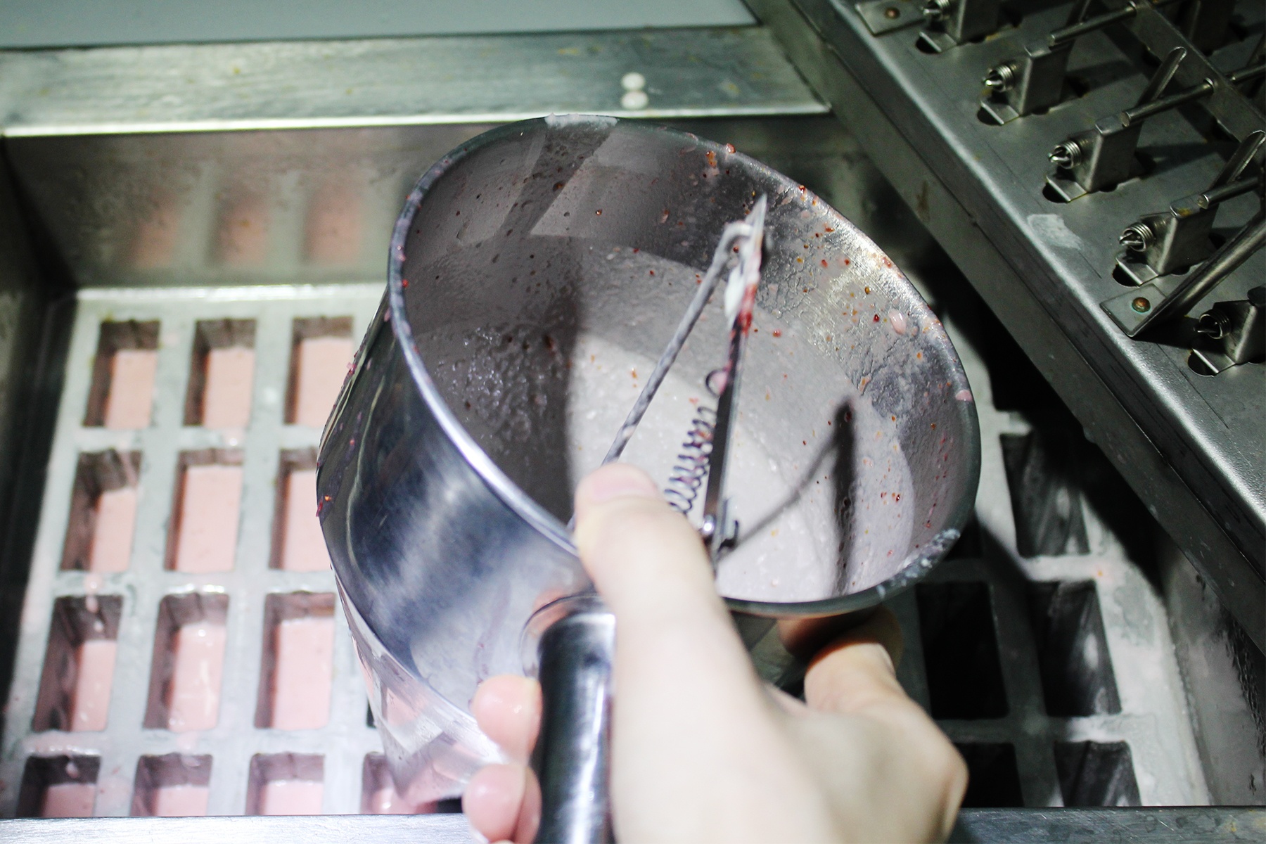 Hỗn hợp làm kem sau khi được hòa trộn sẽ được bơm vào máy làm đông.