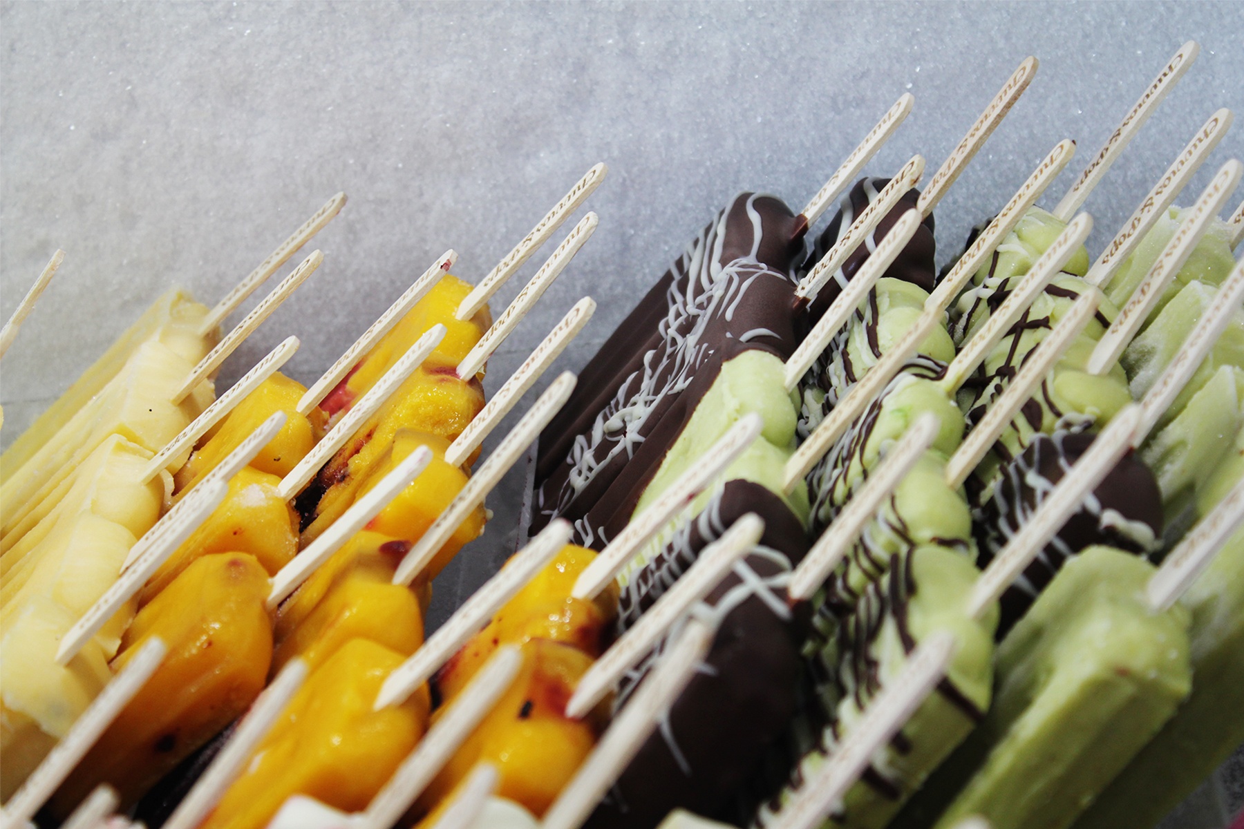 Sau khi chọn được hương vị yêu thích, bạn có thể chọn cách vẽ, rắc và nhúng tùy thích lên que kem của mình.