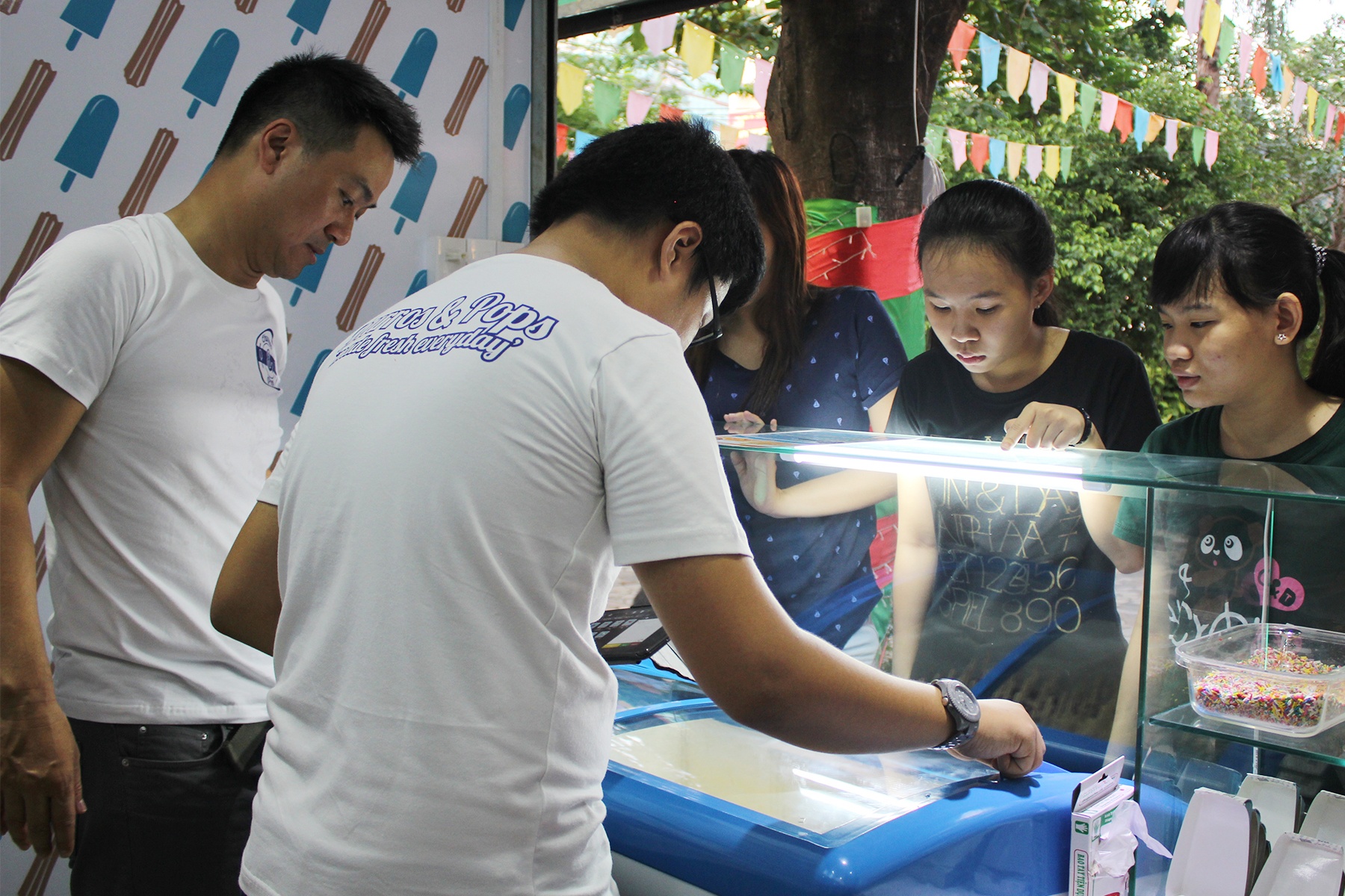 Mới hoạt động, cửa hàng kem trong khu vui chơi Thỏ Trắng (quận 10, TP HCM) đã hút khách với những mẻ kem tươi trái cây làm trong ngày.