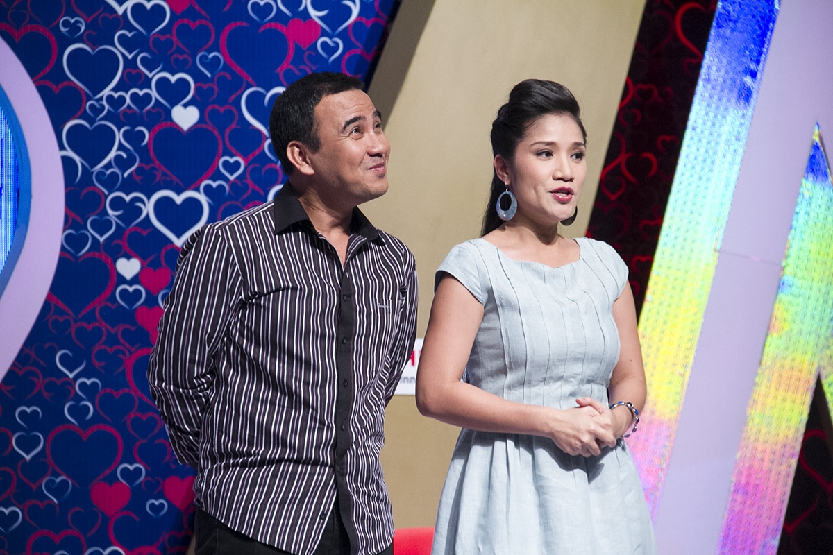 Cặp đôi mai mối Quyền Linh - Cát Tường trên sân khấu.