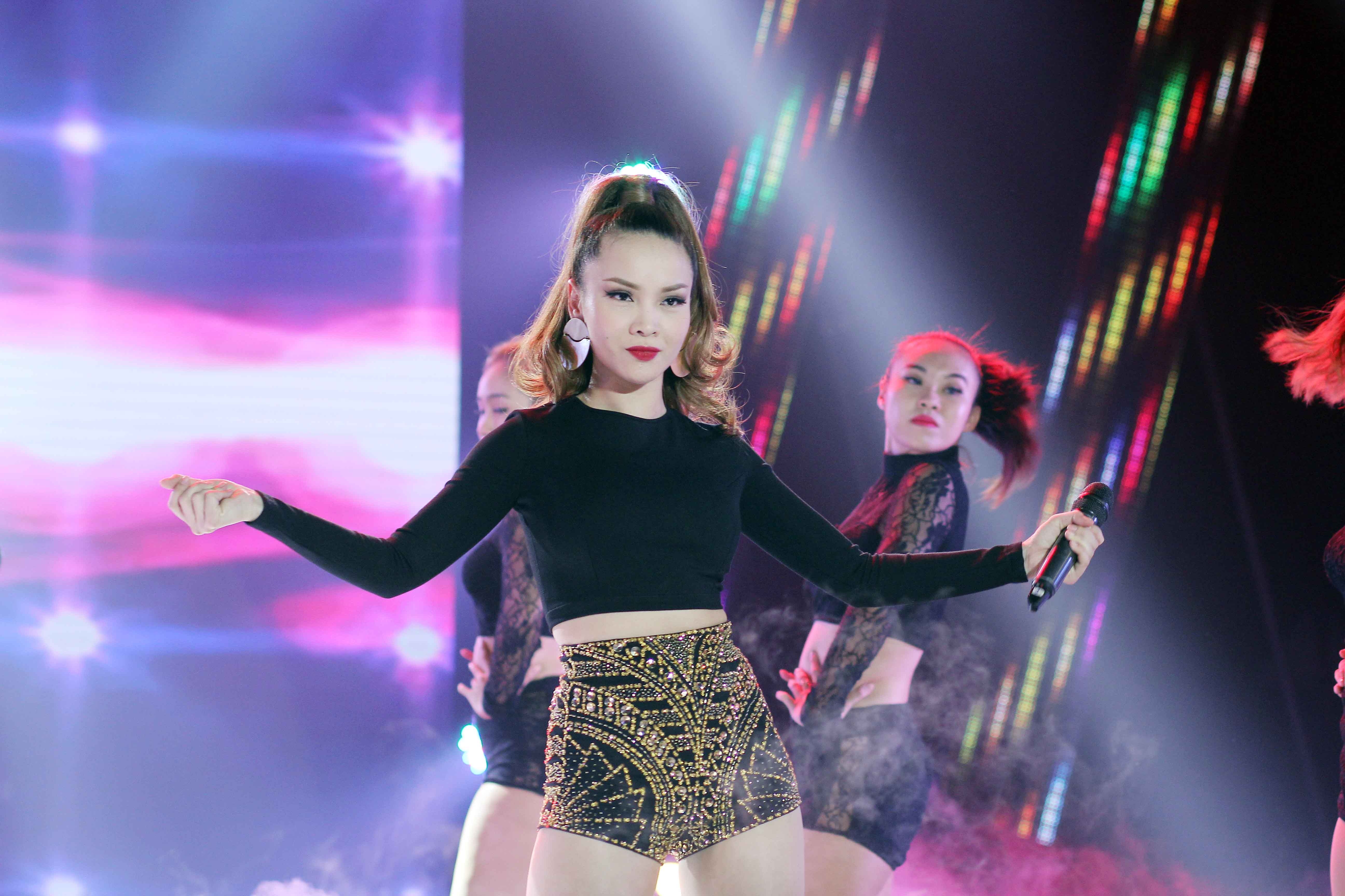 | Quán quân Bước nhảy hoàn vũ 2013 Yến Trang mặc nóng bỏng thể hiện bài hát Killer sôi động.