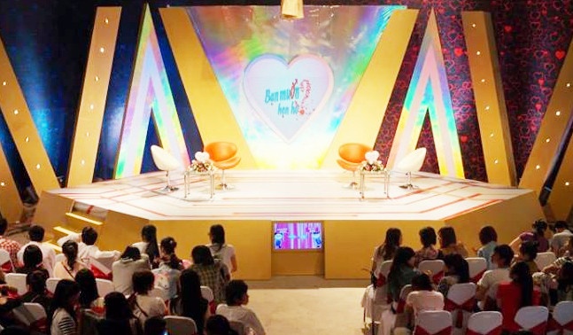 | sân khấu nơi hai MC Quyền Linh – Cát Tường “mai mối” cho đôi bạn trẻ. |