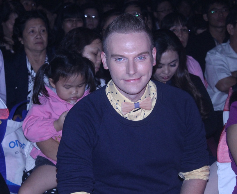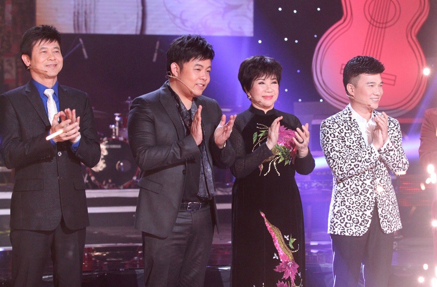 | Nam ca sĩ Quang Lê mặc bảnh bao trong đêm nhạc. Anh cũng đảm nhận vai trò giám khảo trong đêm chung kết. |