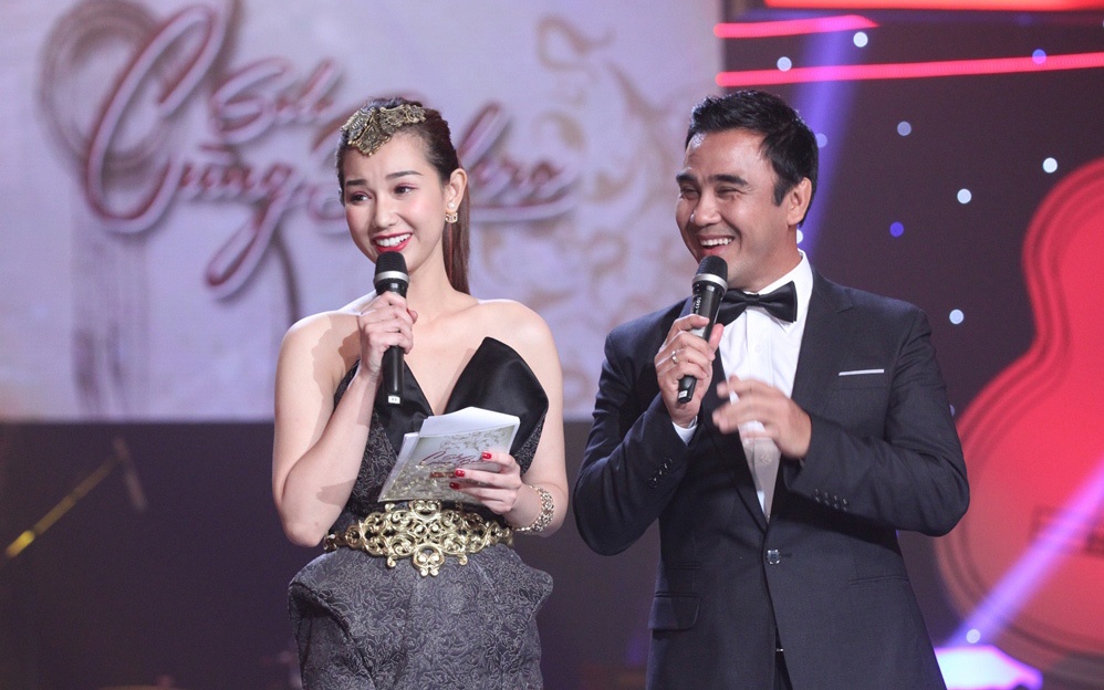 | Người đẹp đọ sắc bên hot girl Quỳnh Chi. Sau một thời gian tạm ngưng công việc nghệ thuật để chăm sóc gia đình, Quỳnh Chi trở lại và đảm nhận vai trò MC của nhiều chương trình truyền hình trực tiếp. |