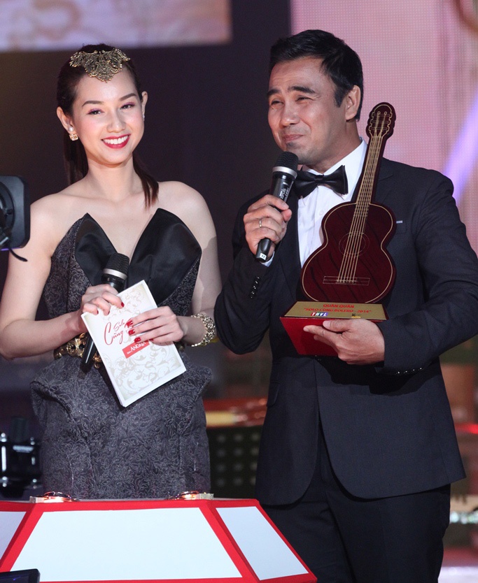 | Trên sân khấu trực tiếp, Nữ MC xuất hiện lộng lẫy với chiếc váy của nhà thiết kế Quân Phan, trang sức cùng tông đính trên tóc. Đây cũng là trang phục được nhiều ca sĩ ưa chuộng thời gian gần đây. Do đã đảm nhận vai trò MC cho chương trình từ những ngày đầu nên Quỳnh Chi khá tự tin và thoải mái, bên cạnh người bạn dẫn là MC Quyền Linh. |