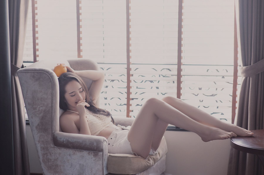 | Với khả năng diễn xuất tốt cùng vóc dáng cân đối, Quỳnh Nga dễ dàng nhập vai diễn trong các bộ ảnh thiên về thời trang nội y, đồ ngủ. |