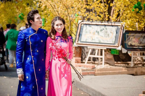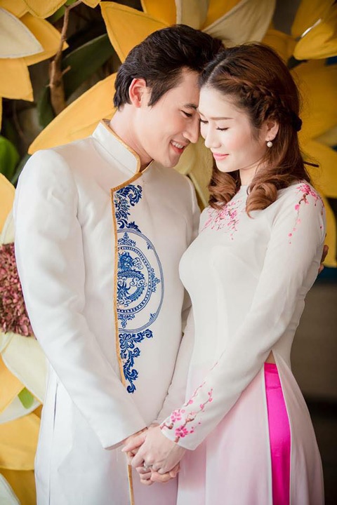 | Xuống phố lần này, Quỳnh Thi và Hà Trí Quang chọn cho mình trang phục truyền thống của dân tộc. |