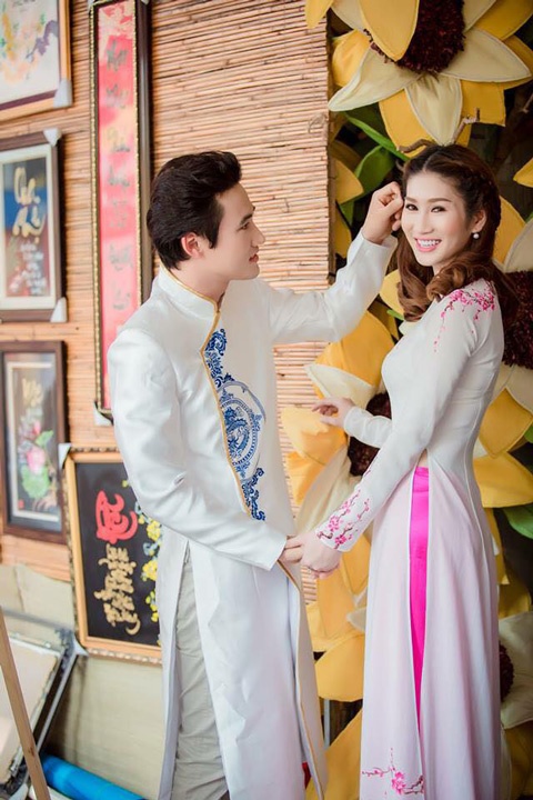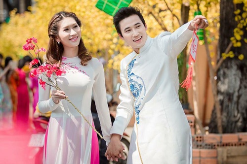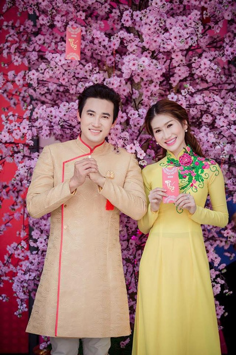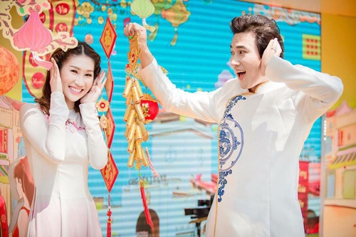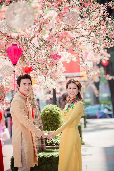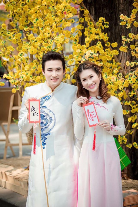 | Bộ ảnh Tết của Quỳnh Thi và Hà Trí Quang theo phong cách cổ truyền. |