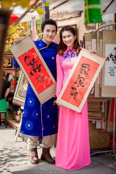 | Trong không khí vui tươi nhân dịp Tết Nguyên đán, cả hai đã tranh thủ thời gian thực hiện bộ ảnh đẹp trên phố ông đồ, như một món quà dành tặng khán giả luôn ủng hộ họ trong thời gian qua. |